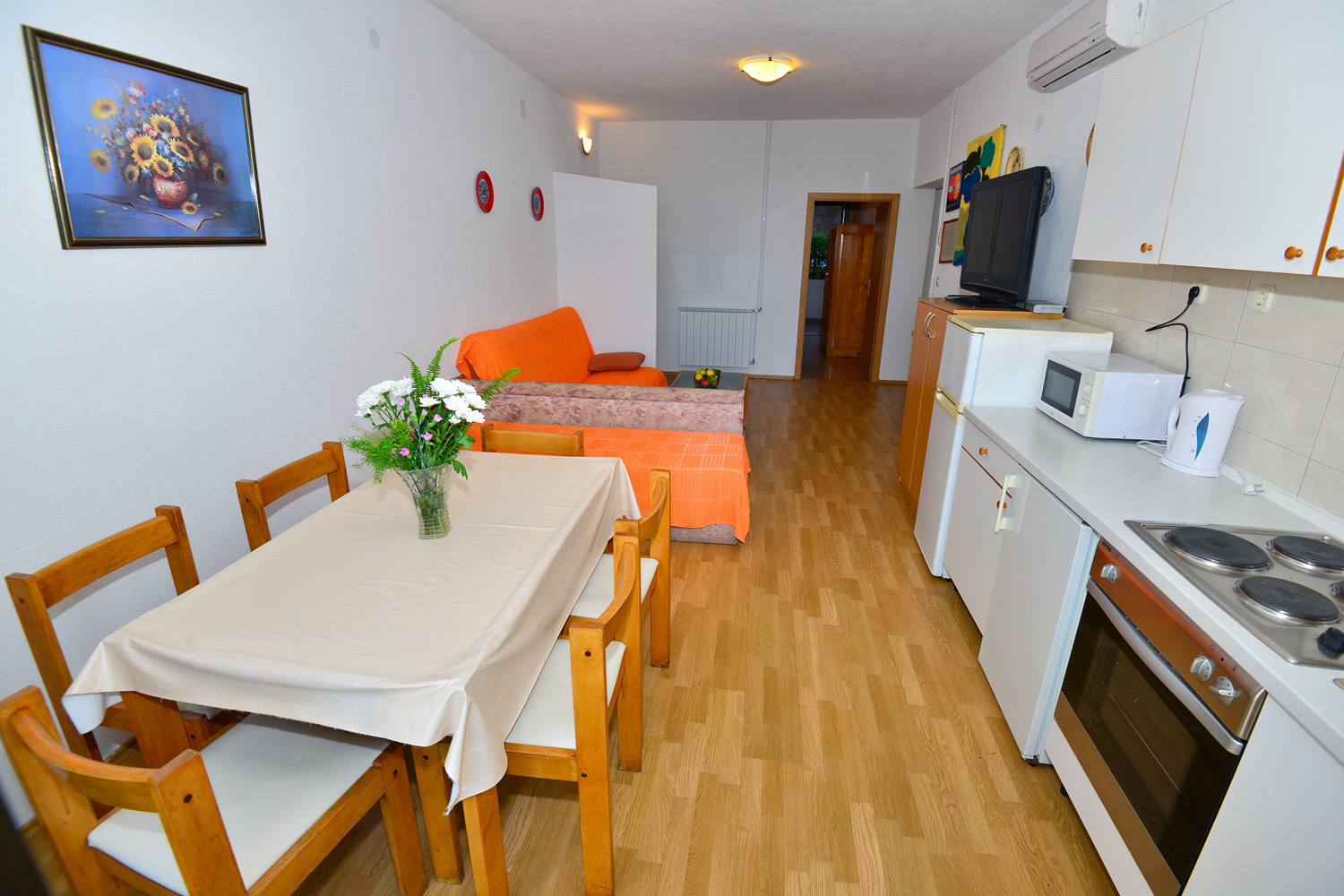 2 trokrevetne sobe + 2 pomoćna kreveta u dnevnom boravku