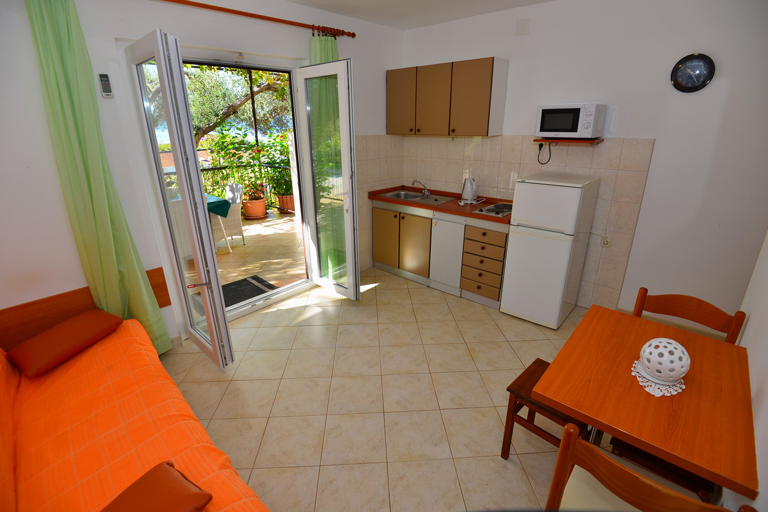 Kuhinja s dnevnim boravkom u kojem je kauč za 2 djece + kupatilo