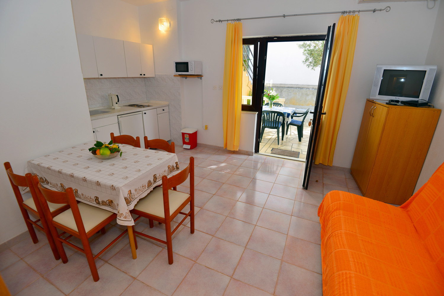 Kuhinja s dnevnim boravkom u kojem je kauč za 2 djece + kupatilo